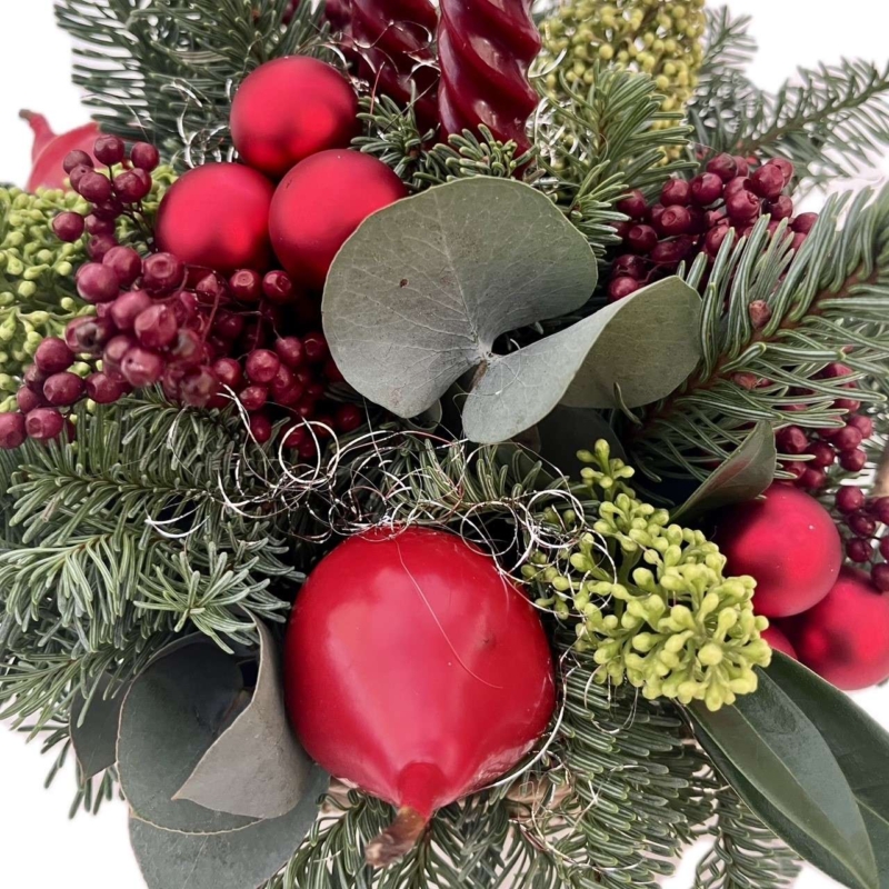 Categorie: Kerst Tags: kerst, kerstarrangement, kerstbiedermeier, kerststuk, kerststuk rood, klassiek kerstarrangement